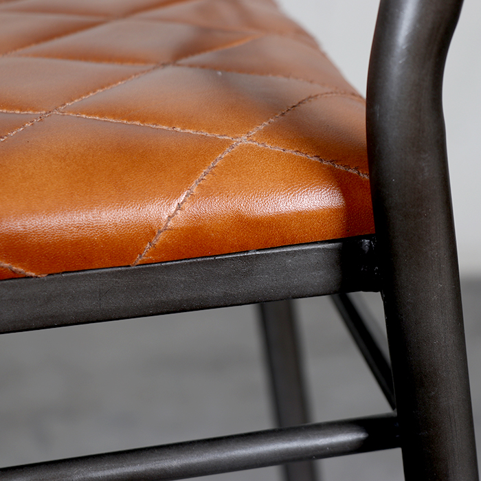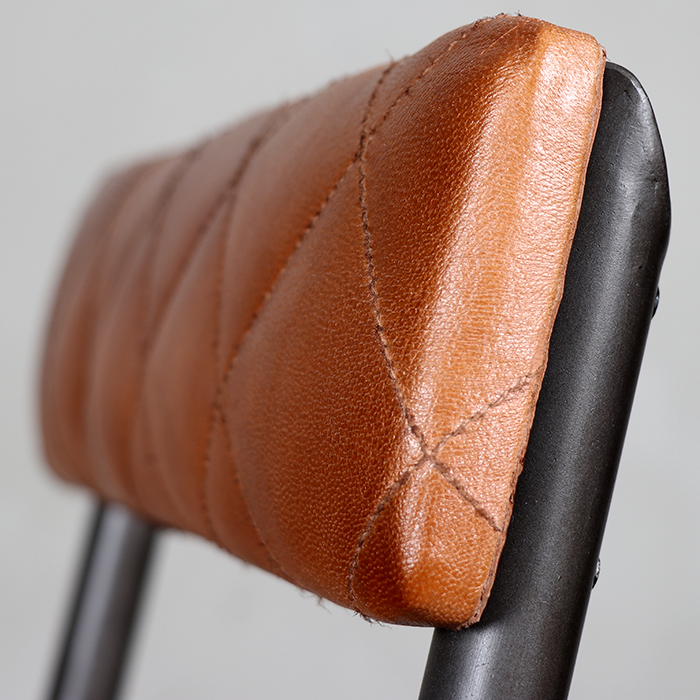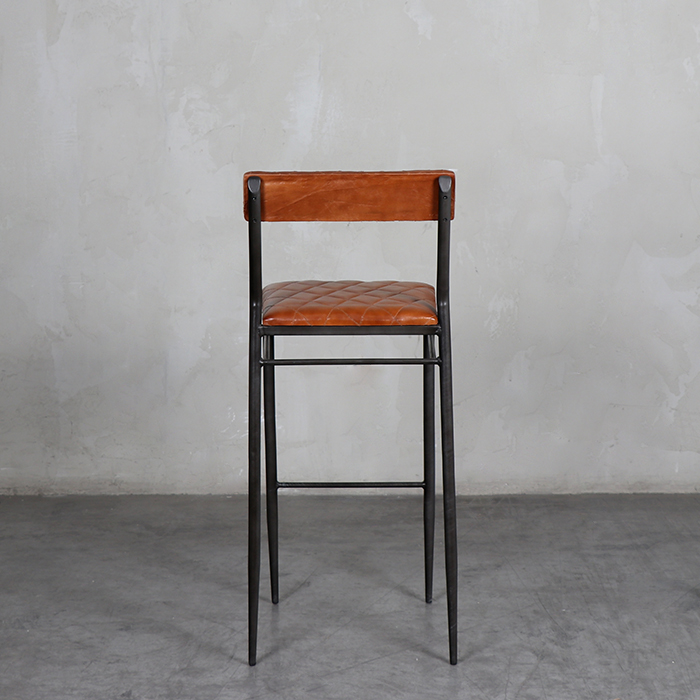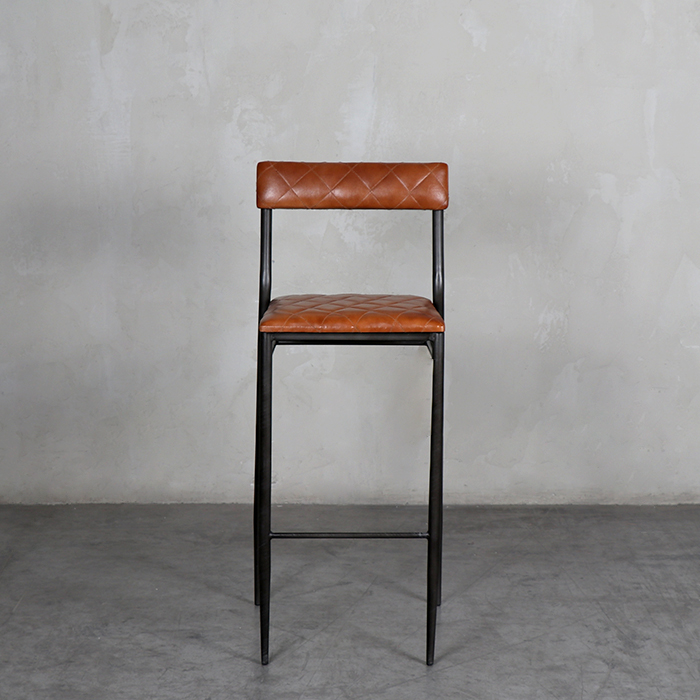 Piso bar con estructura en metal, asiento y respaldo en cuero.