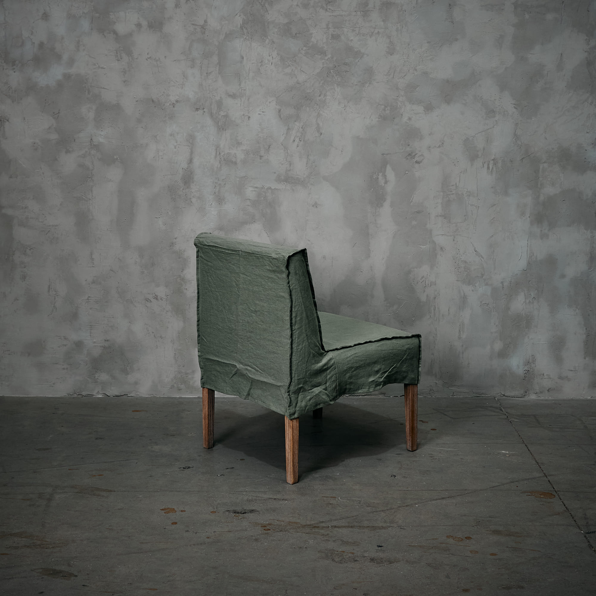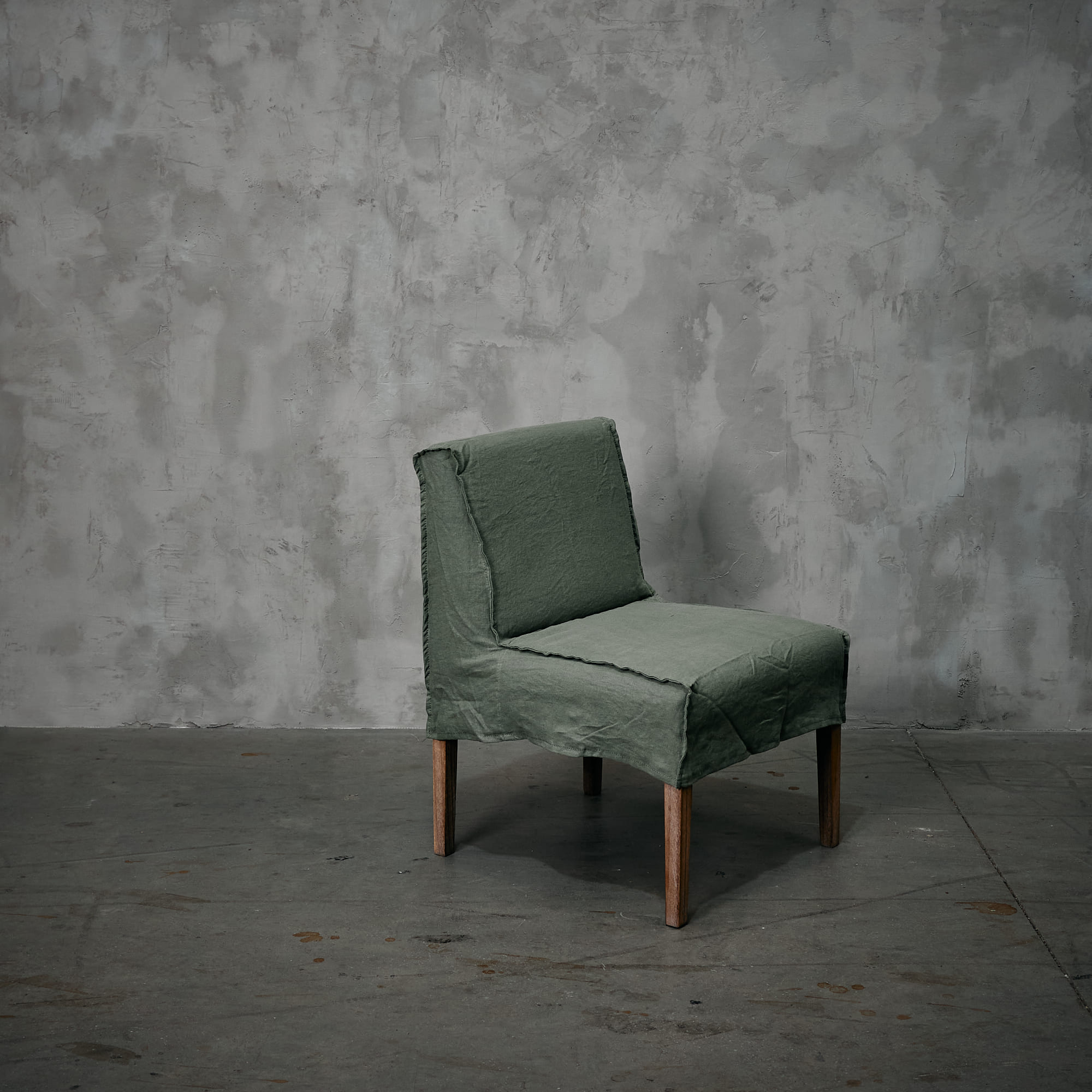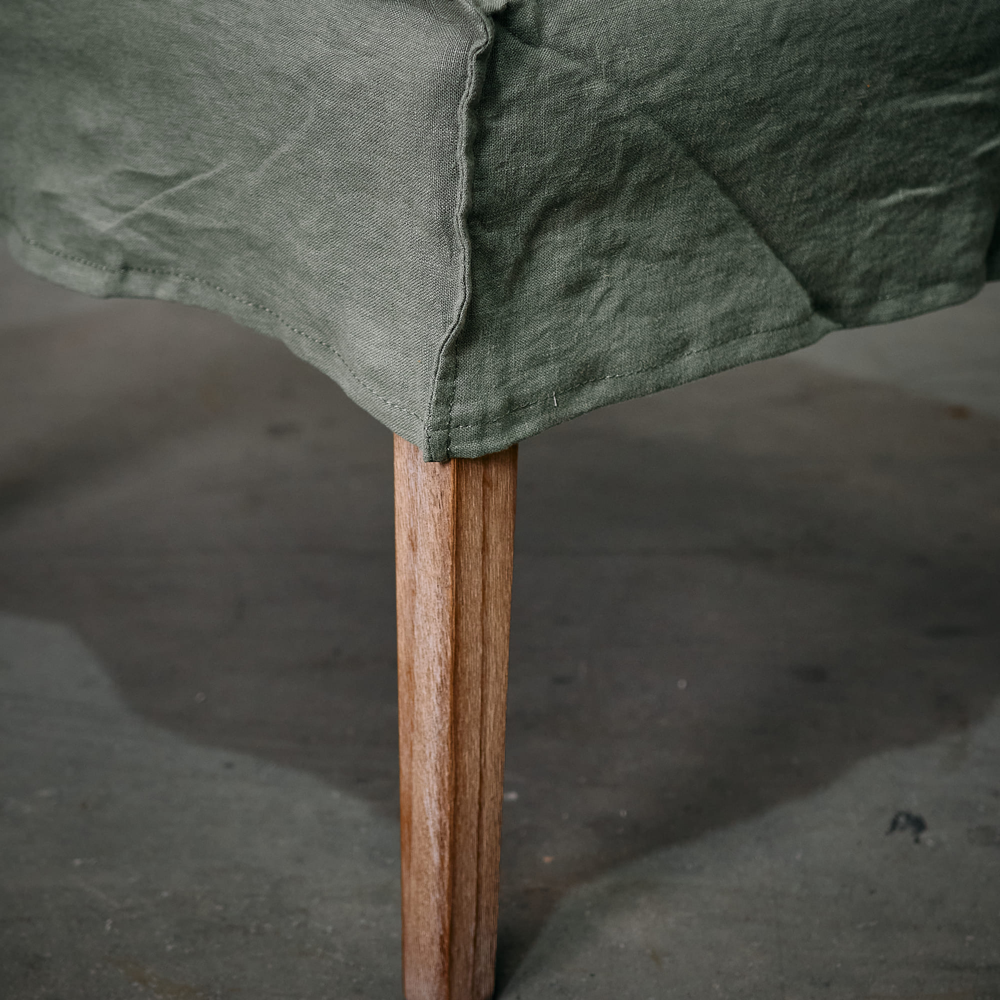 Silla de Madera de Gomero con funda de 100% lino verde.