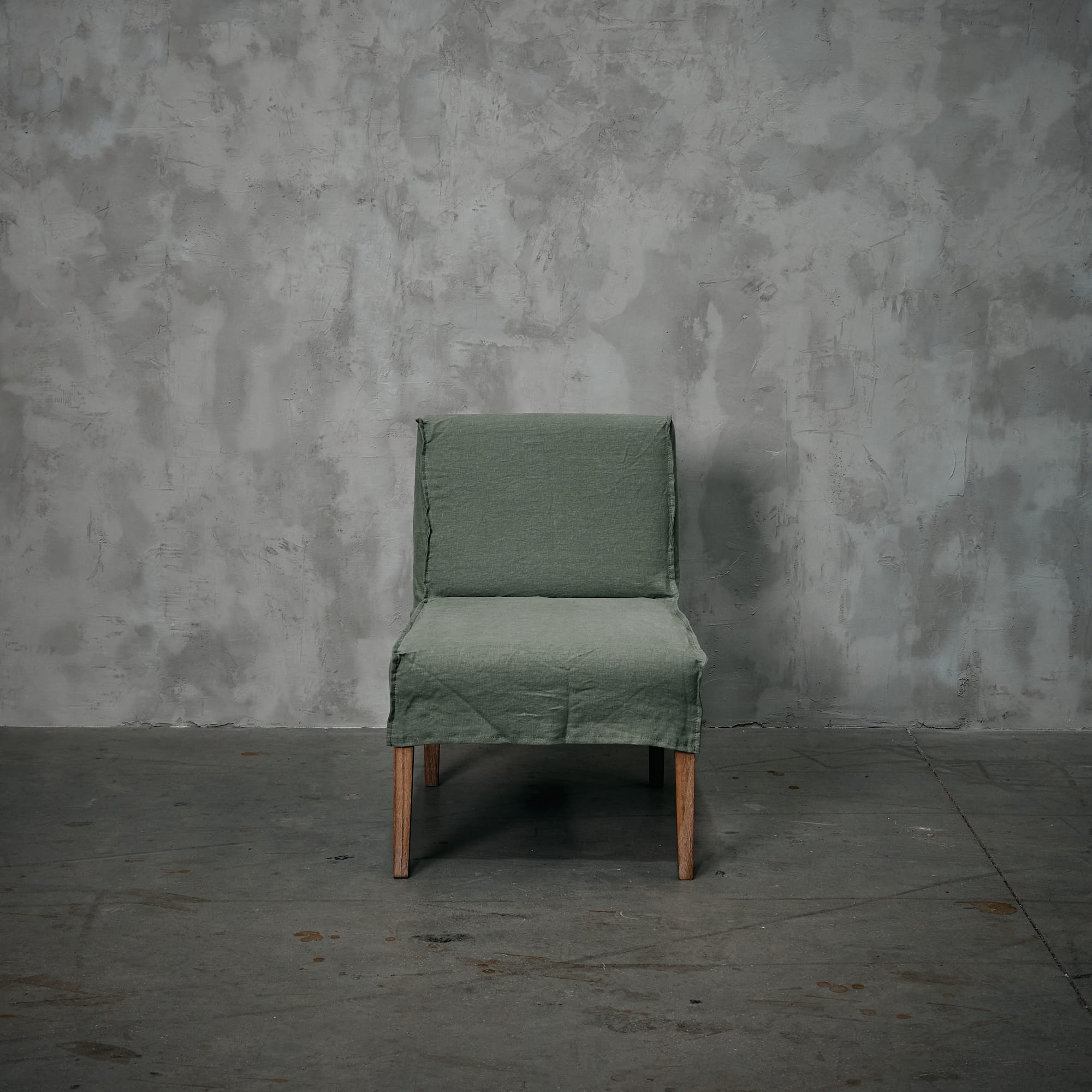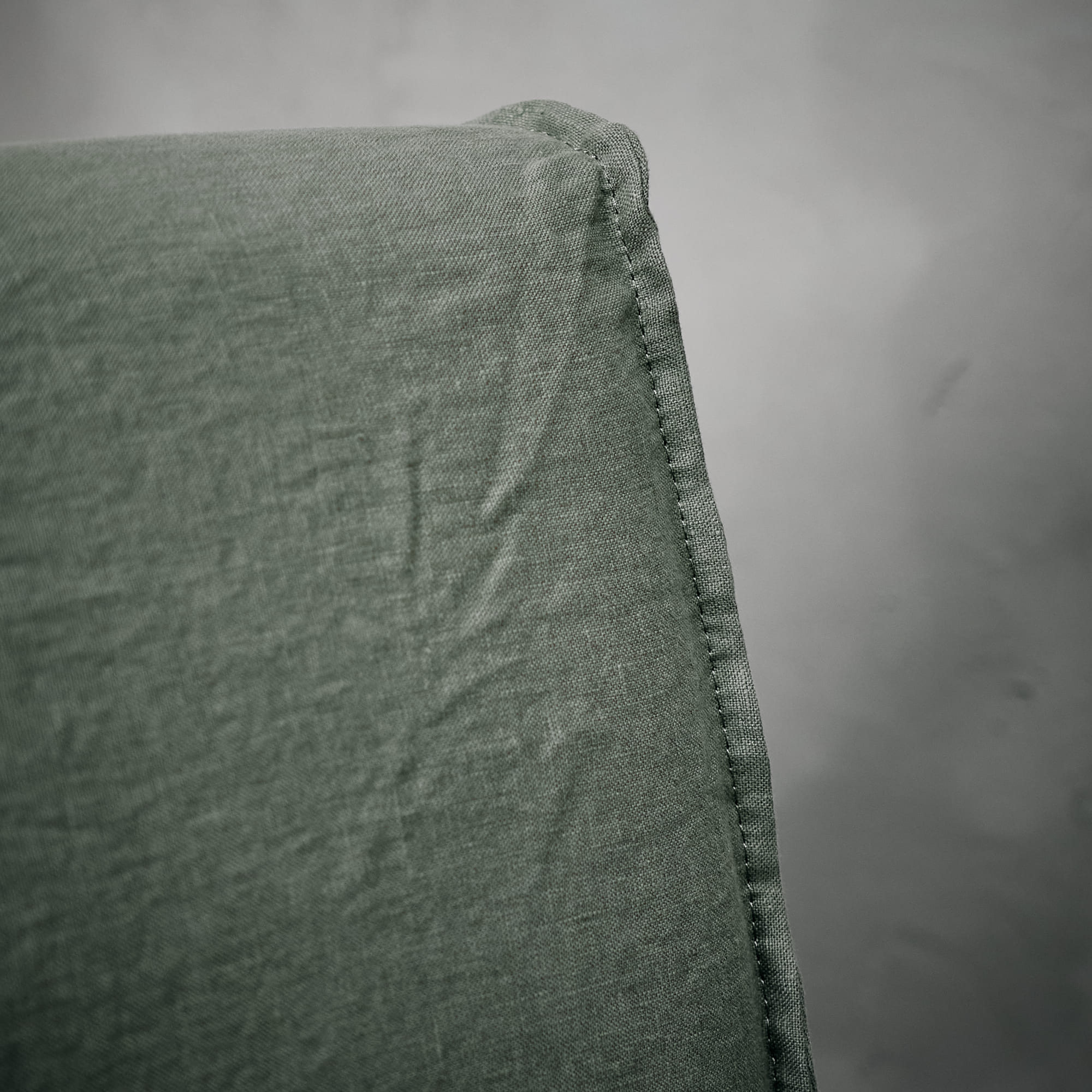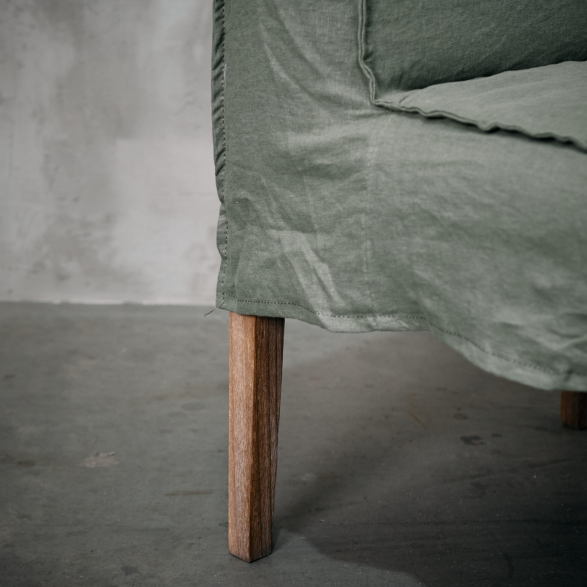 Silla de Madera de Gomero con funda de 100% lino verde.