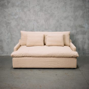 La simpleza viene de los dioses, este nuevo sofá de fabricación chilena no se anda con rodeos, su estructura consiste en solo dos cojines alargados en su respaldo y un asiento sin divisiones, un sofá que utiliza un lenguaje claro y vanguardista, se define a sí mismo como el sofá sin máscaras y con patas de metal.